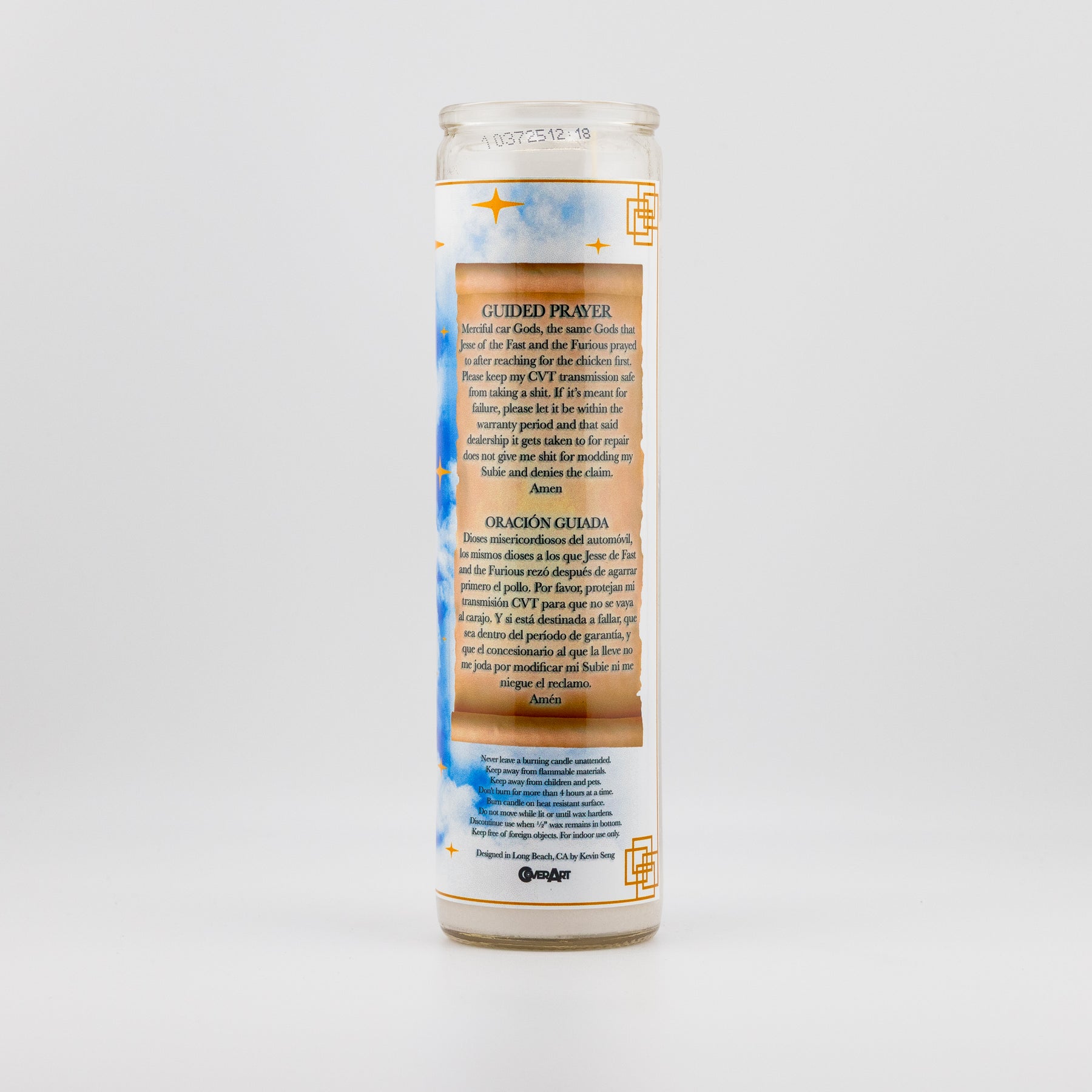 "Pray For My CVT" Subaru-Inspired Prayer Candle