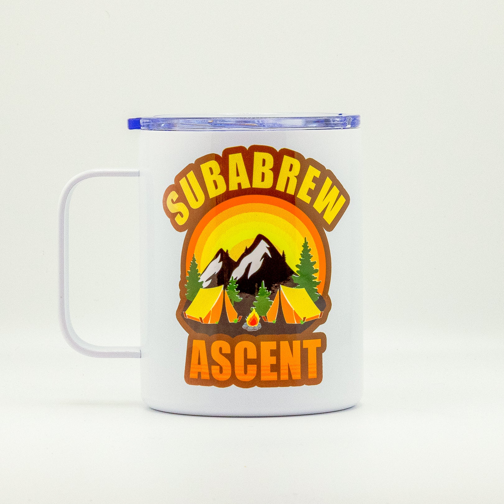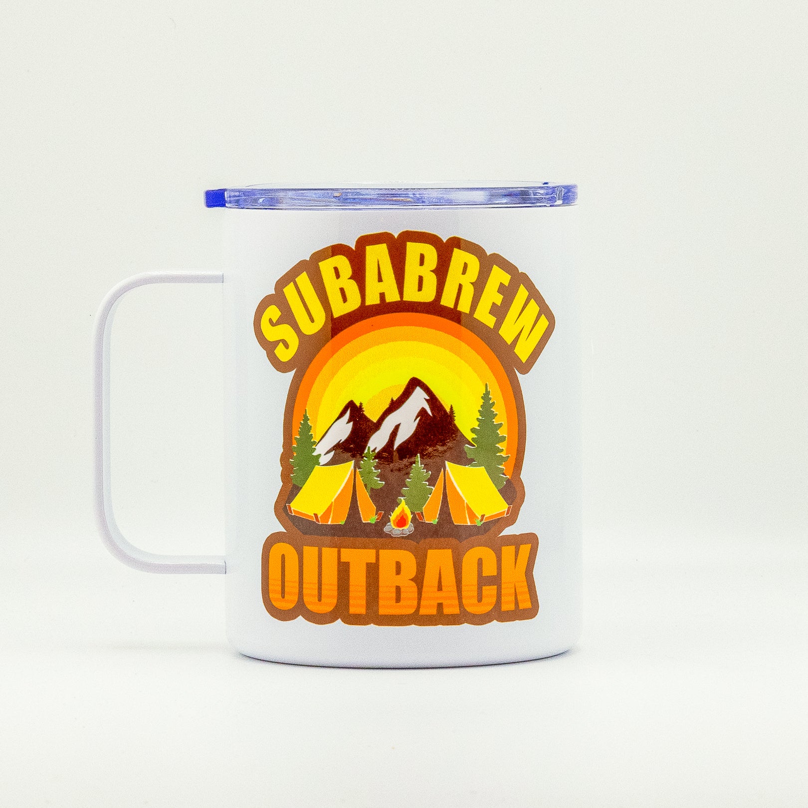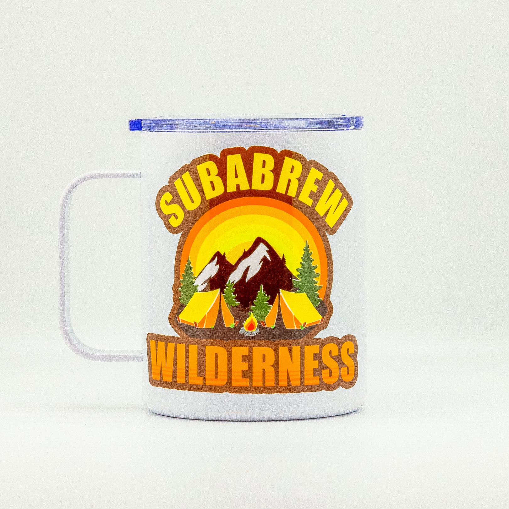 Adventure ready design - featuring mountains, tents and a campfire with the bold Subabrew graphic that brings the outdoor spirit straight to your cup.